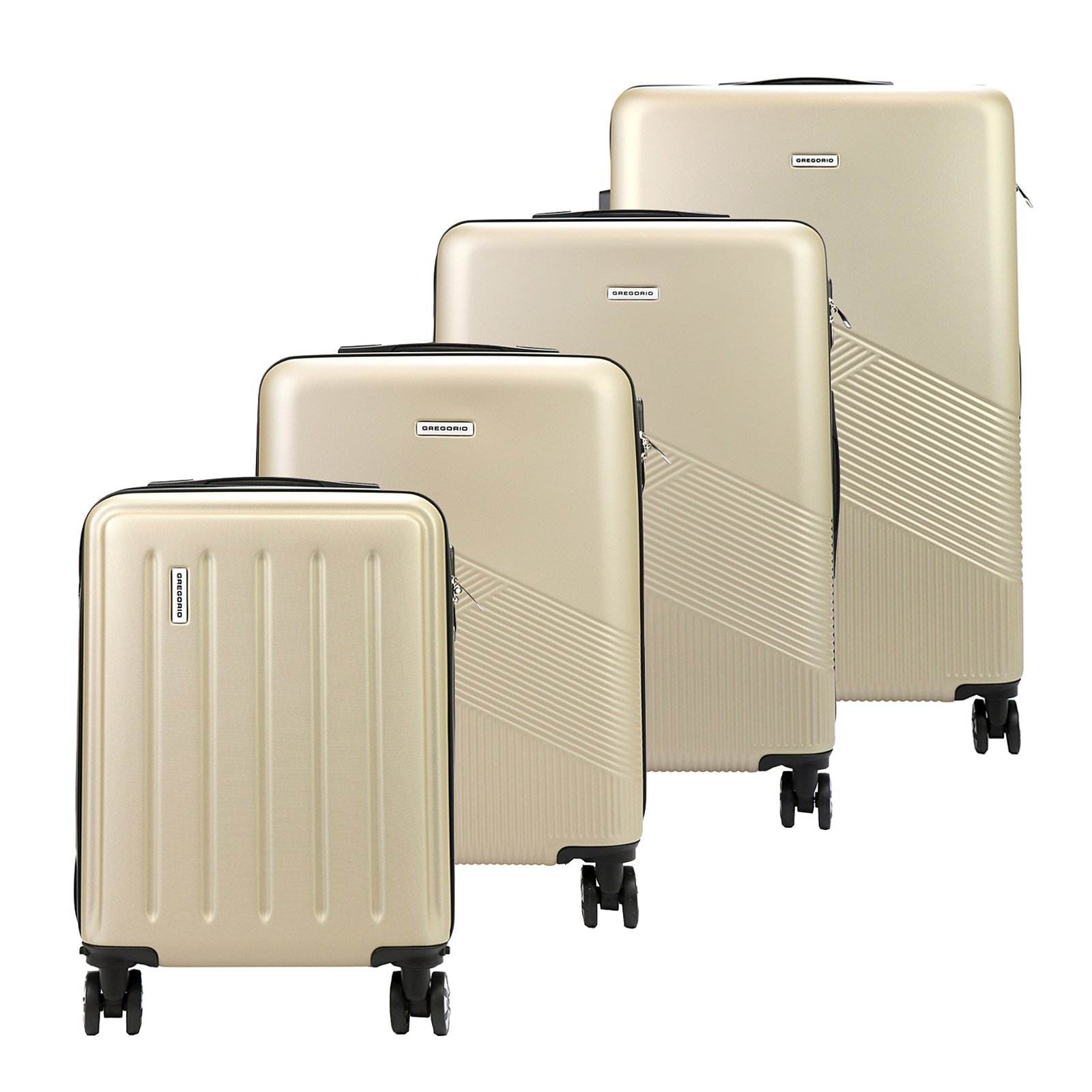 Zestaw składa się z czterech walizek w rozmiarach 18, 20, 24 i 28 cali.