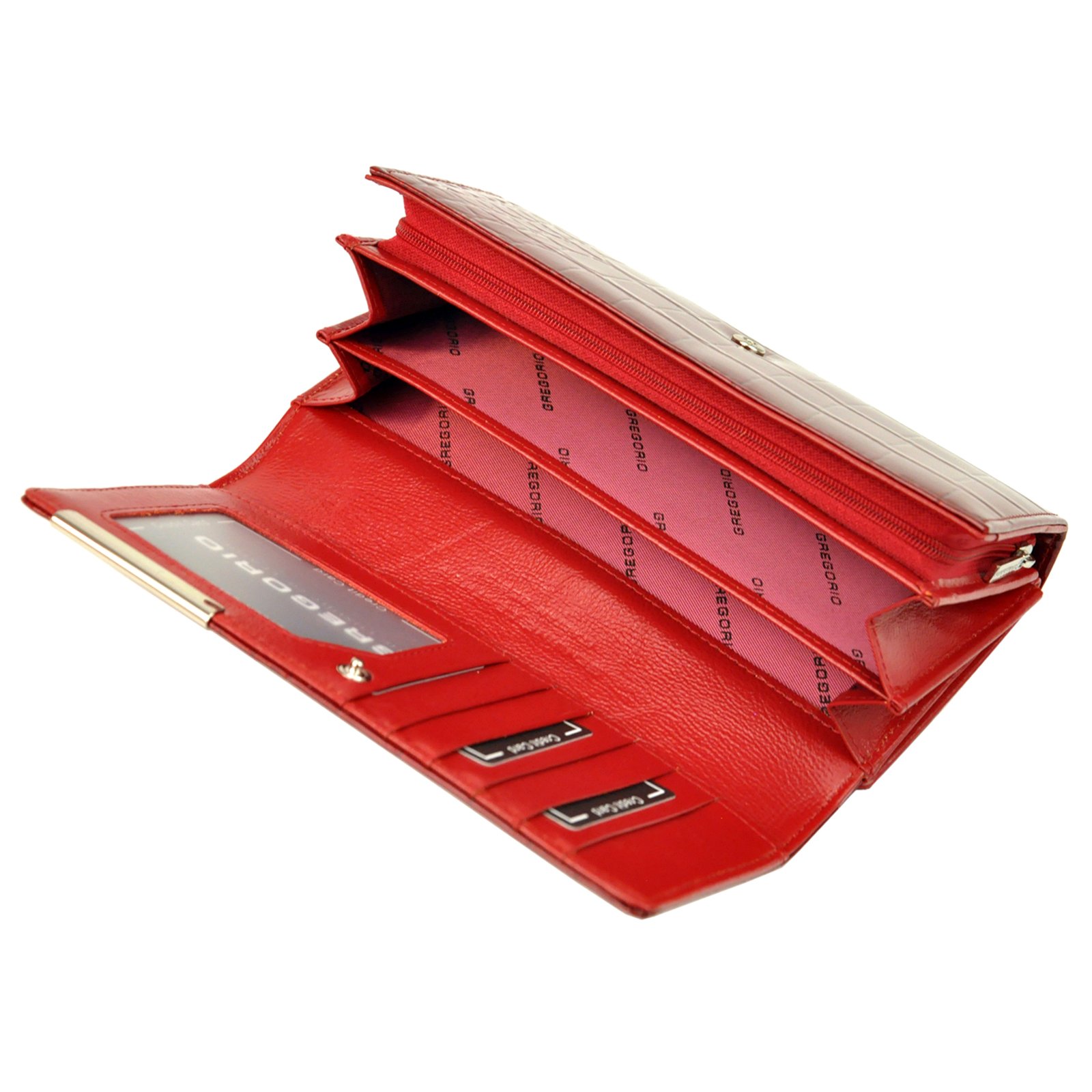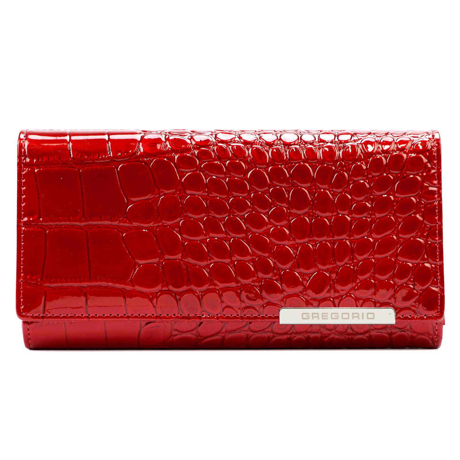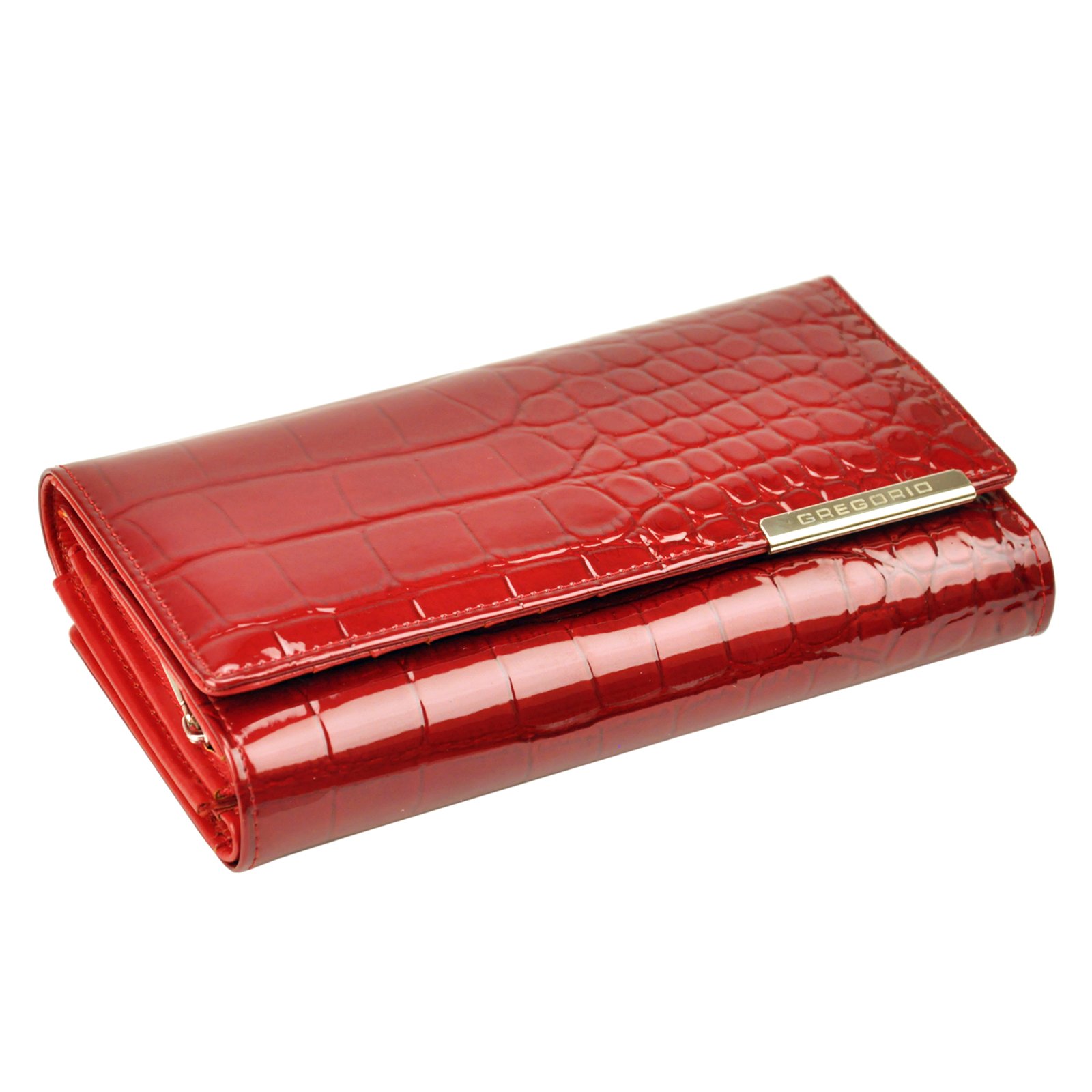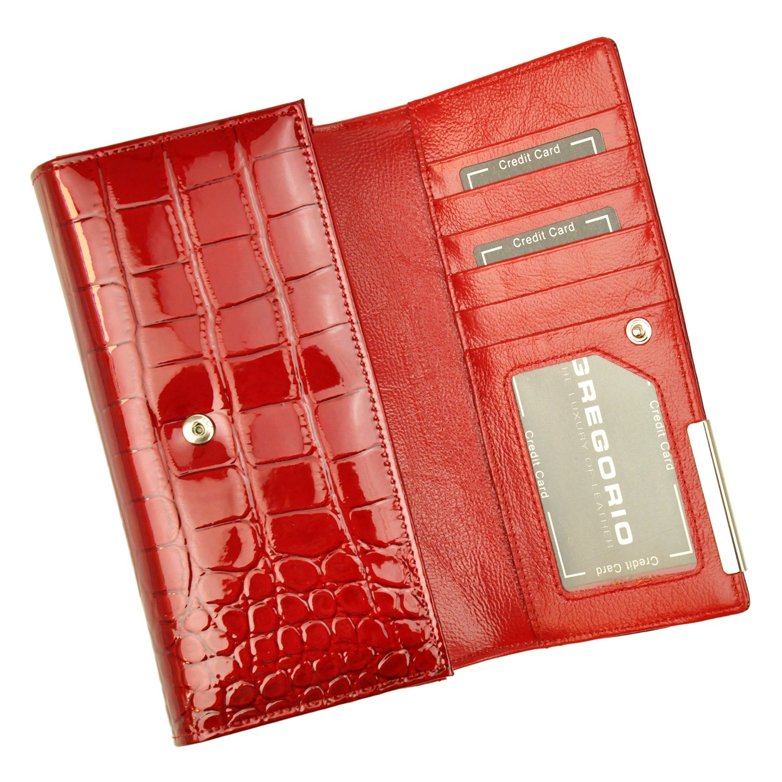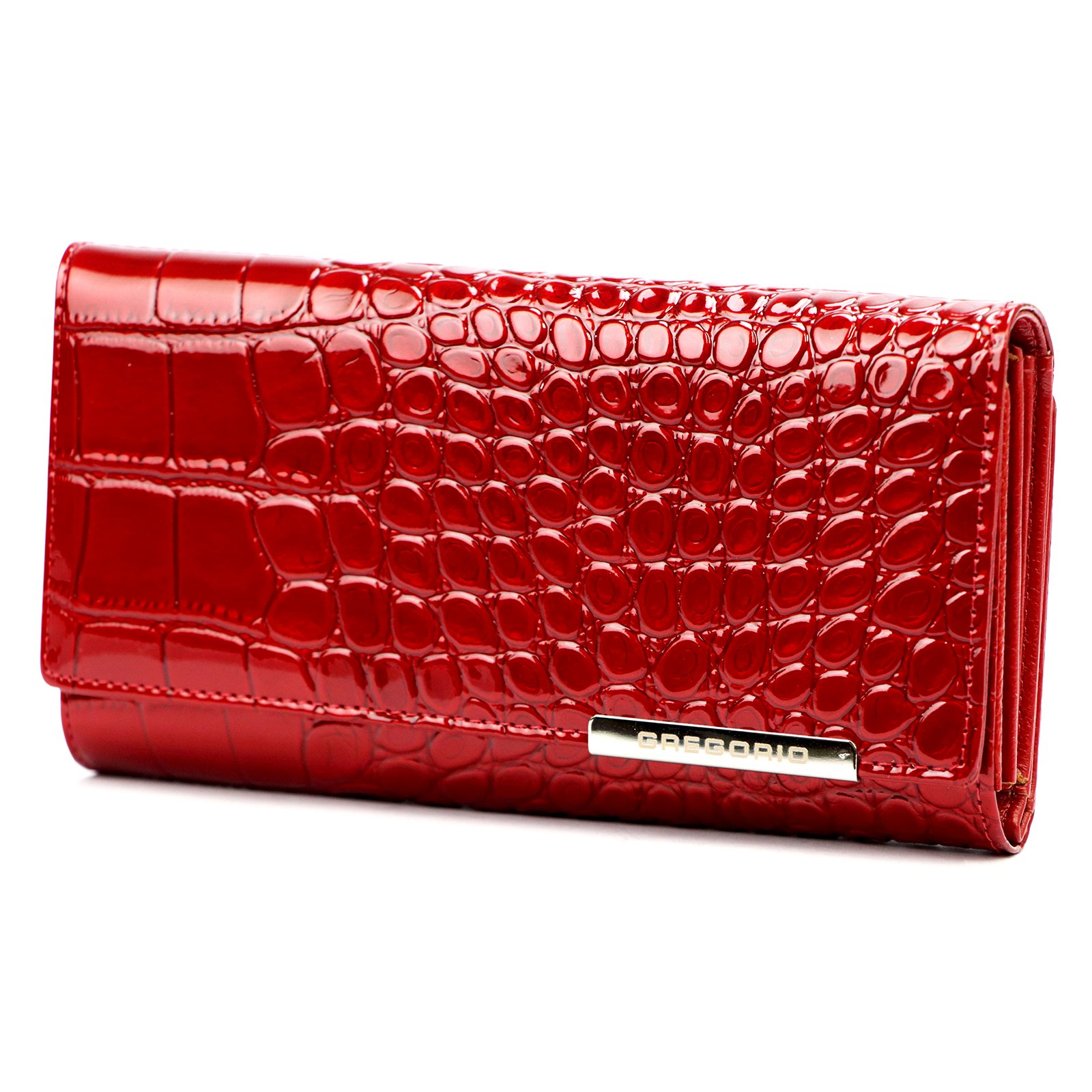 Duży portfel damski, wykonany z najwyższej jakości naturalnej, włoskiej skóry licowej lakierowanej.