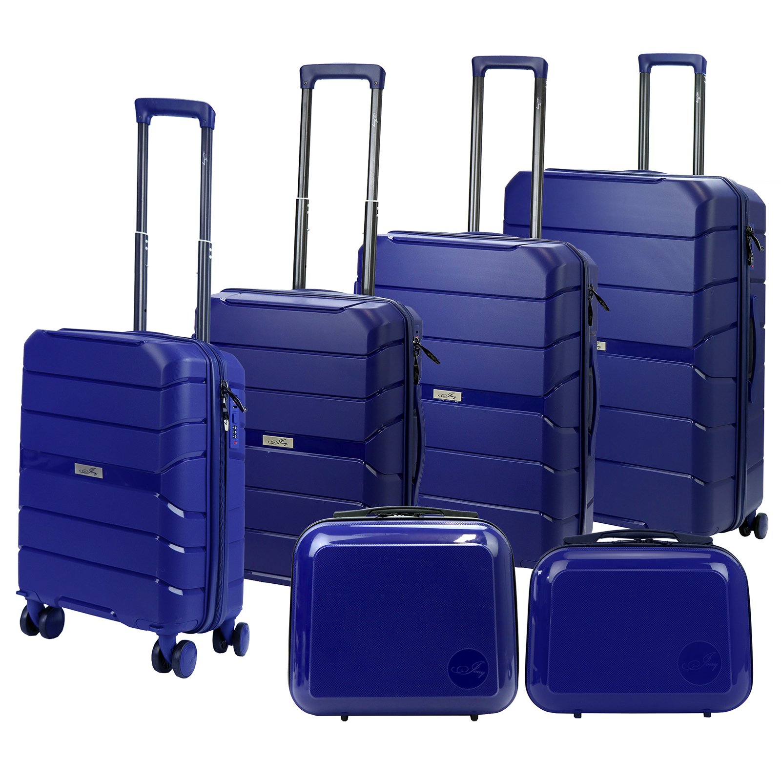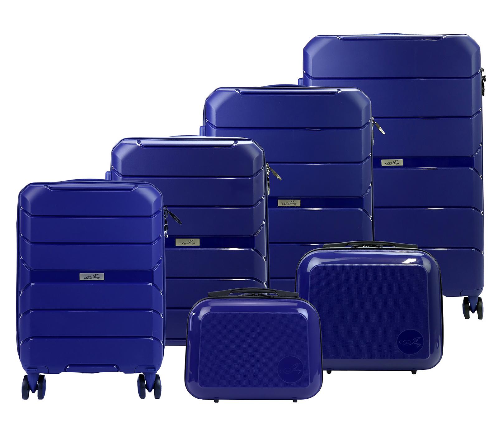 Zestaw składa się czterech walizek o rozmiarach 18, 20, 24 i 28 cali oraz dwóch kuferków w rozmiarze 14 i 16 cali.