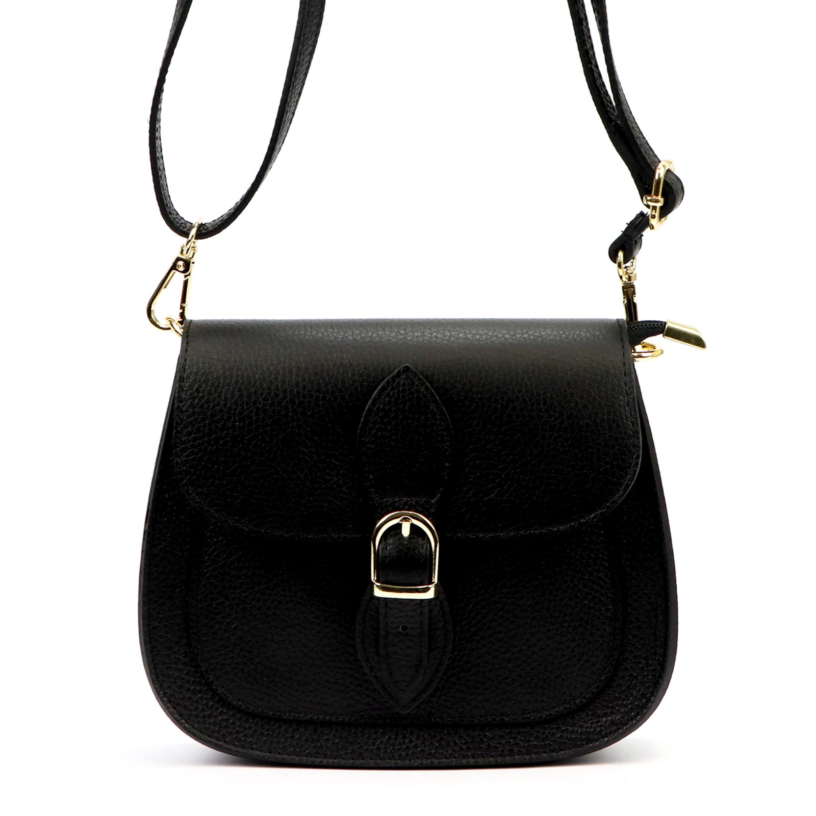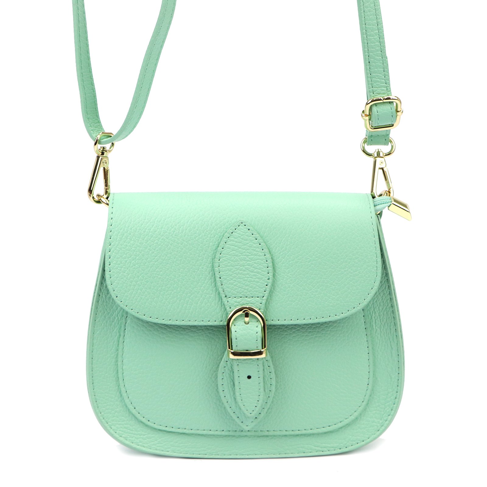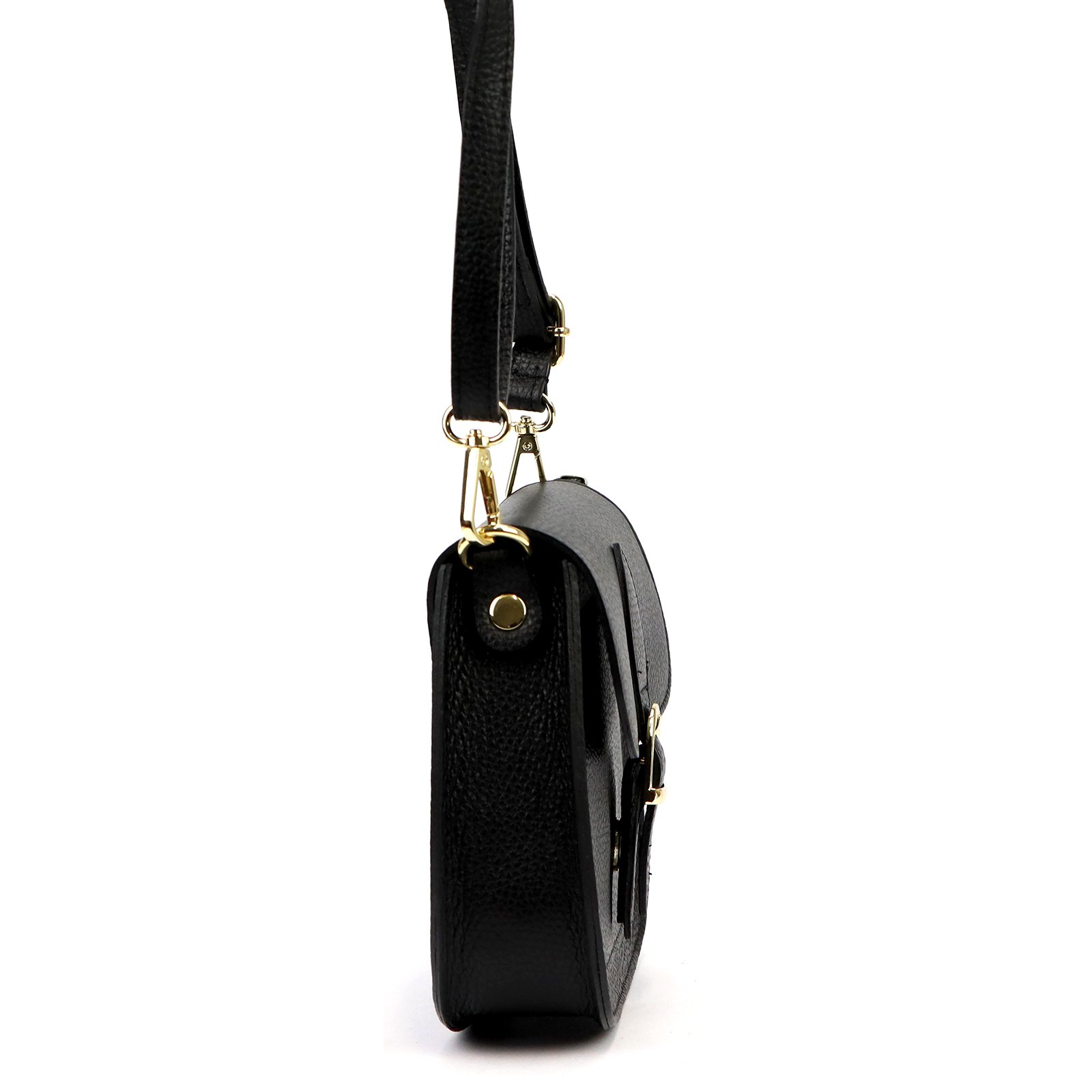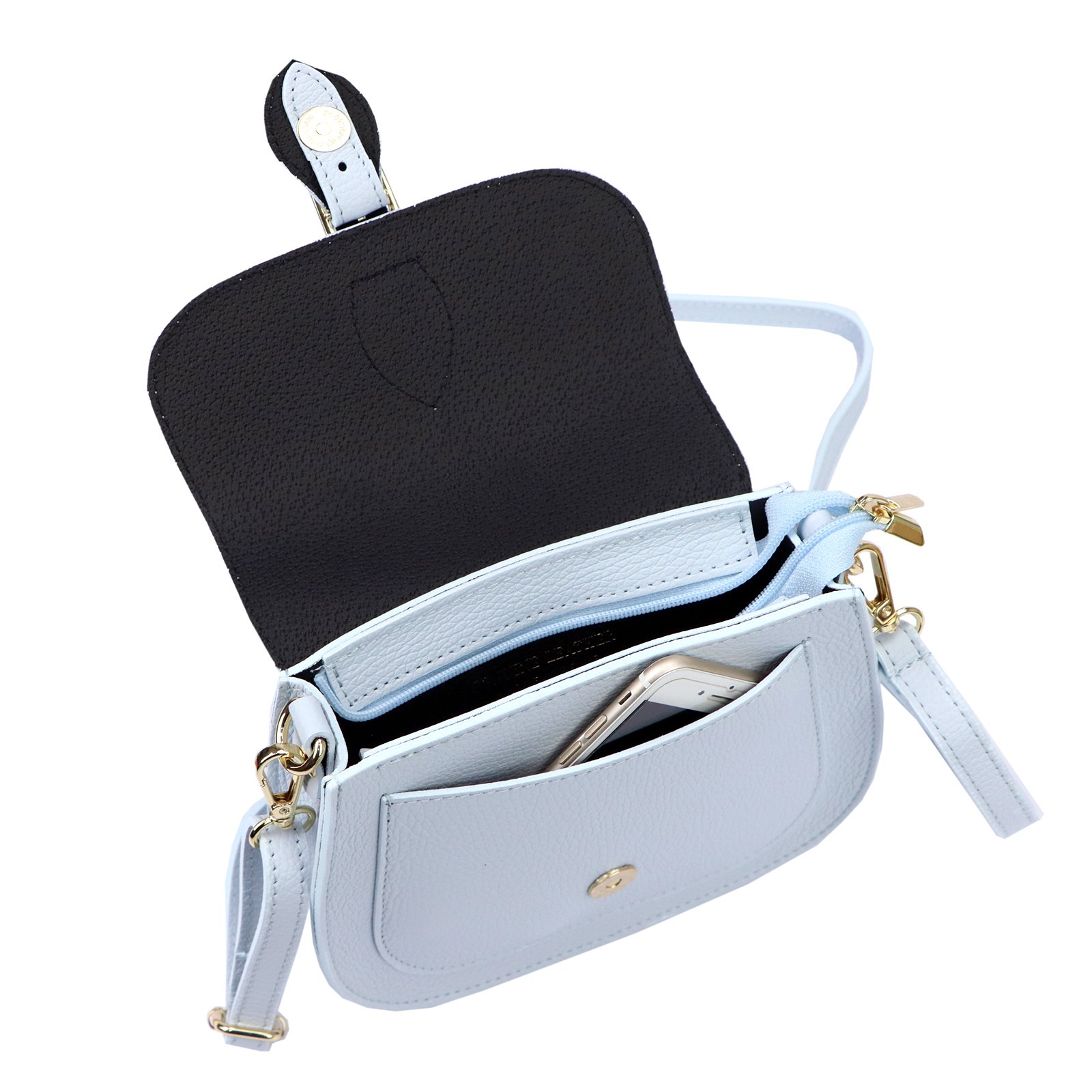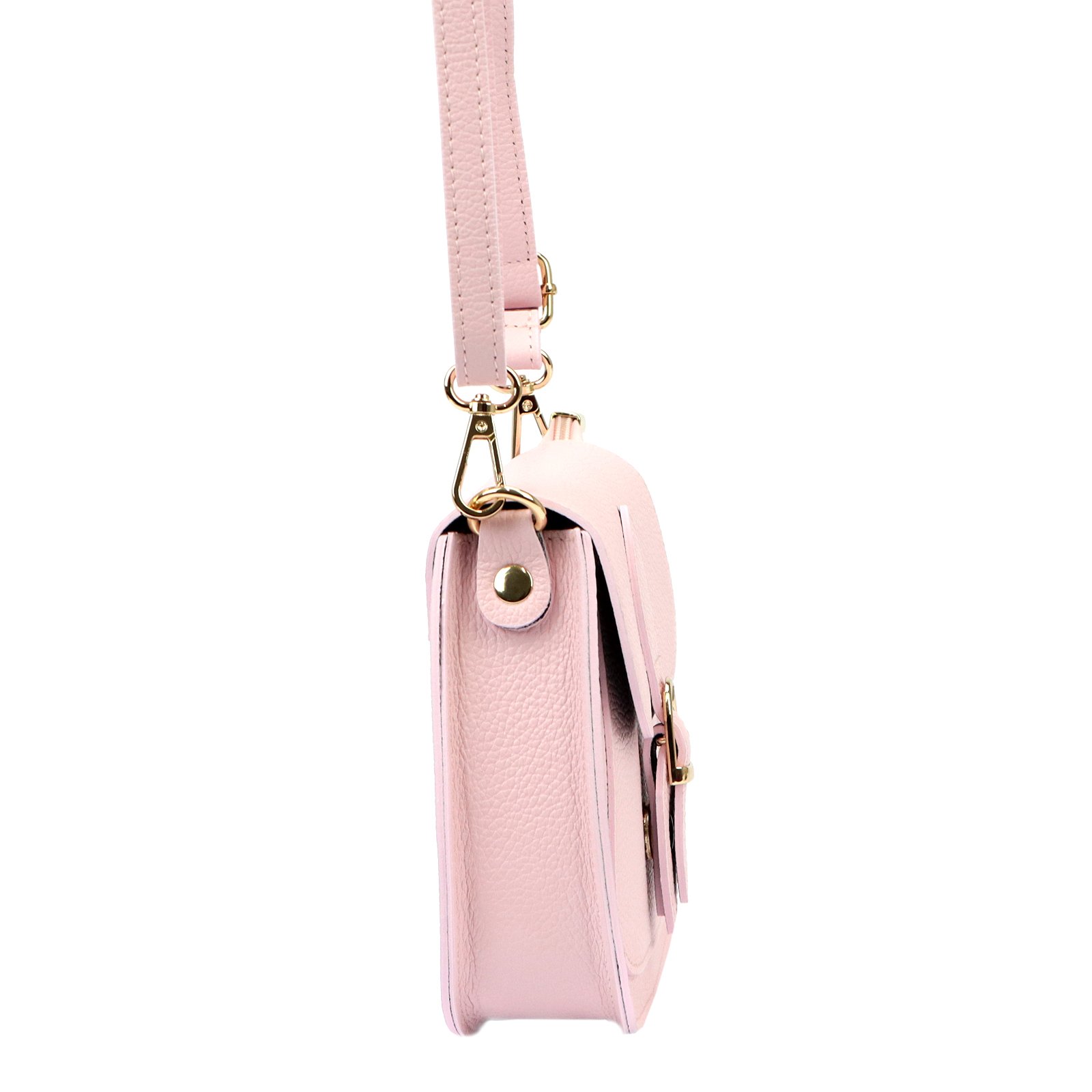 Mała torebka-listonoszka z naturalnej, włoskiej skóry licowej. Torebka ma budowę jednokomorową, wykończoną trwałą podszewką. Na froncie naszyta jest kieszeń, mieszcząca smartfon. Całość zamykana jest zamkiem błyskawicznym i klapą z zatrzaskiem magnetycznym. Długi pasek pozwala wygodnie nosić ją na ramieniu lub na ukos przez pierś.