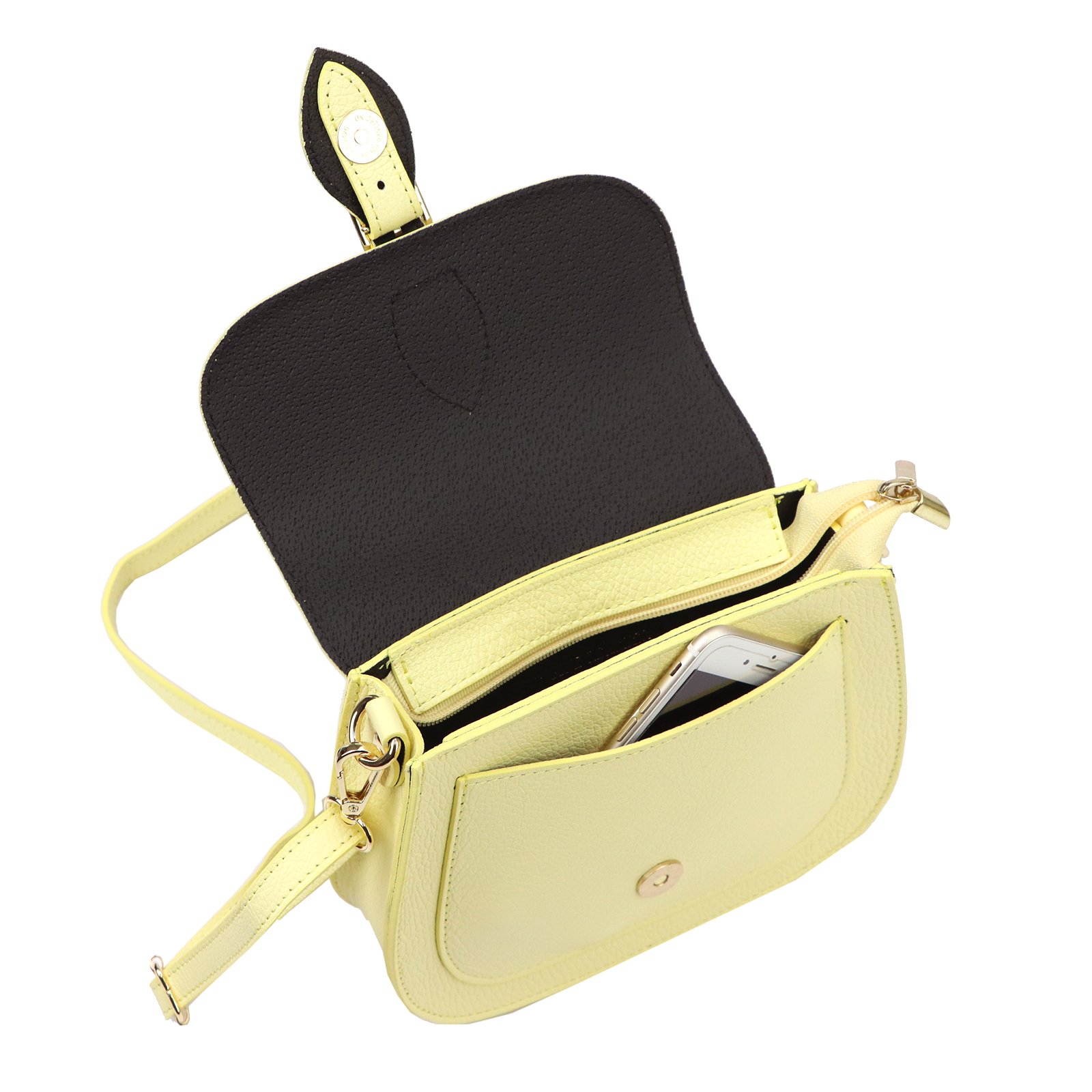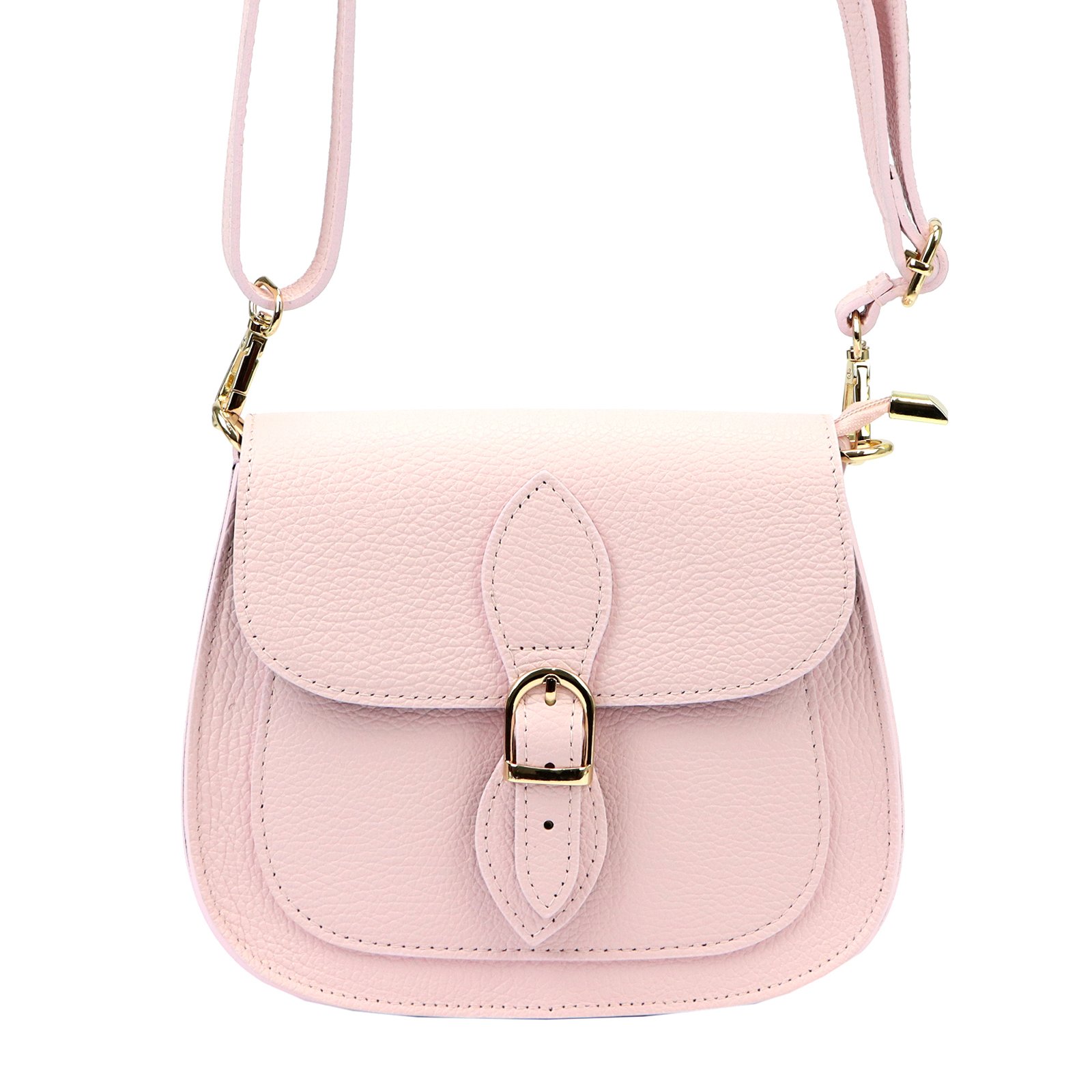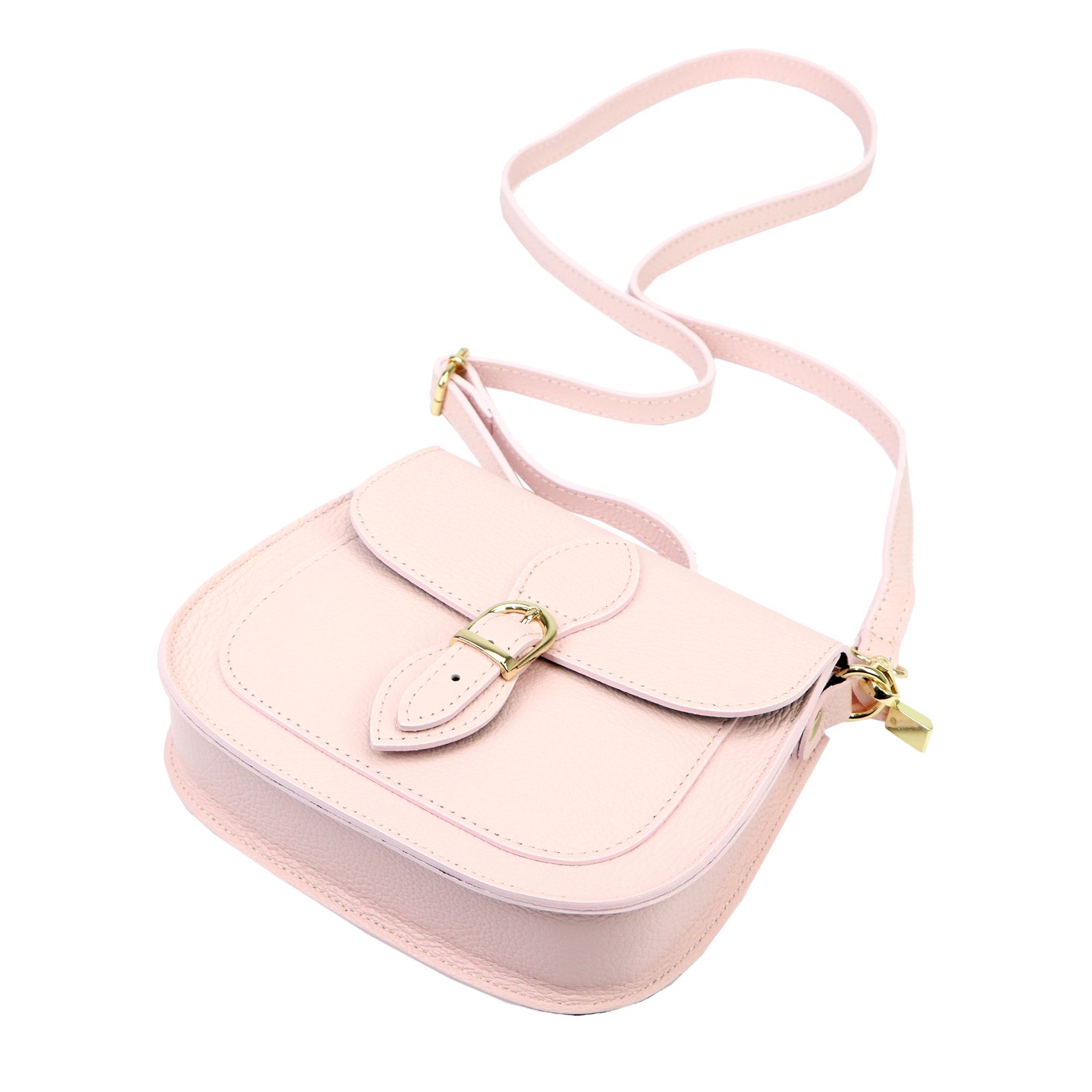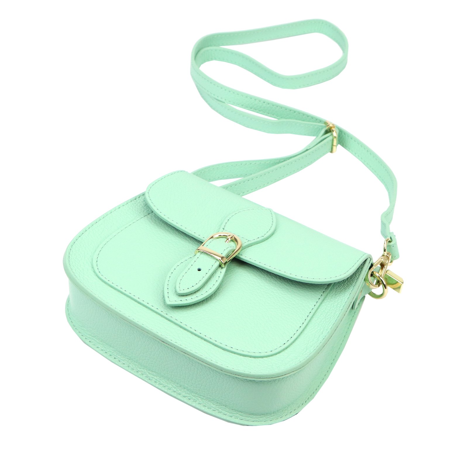 Mała torebka-listonoszka z naturalnej, włoskiej skóry licowej. Torebka ma budowę jednokomorową, wykończoną trwałą podszewką. Na froncie naszyta jest kieszeń, mieszcząca smartfon. Całość zamykana jest zamkiem błyskawicznym i klapą z zatrzaskiem magnetycznym. Długi pasek pozwala wygodnie nosić ją na ramieniu lub na ukos przez pierś.