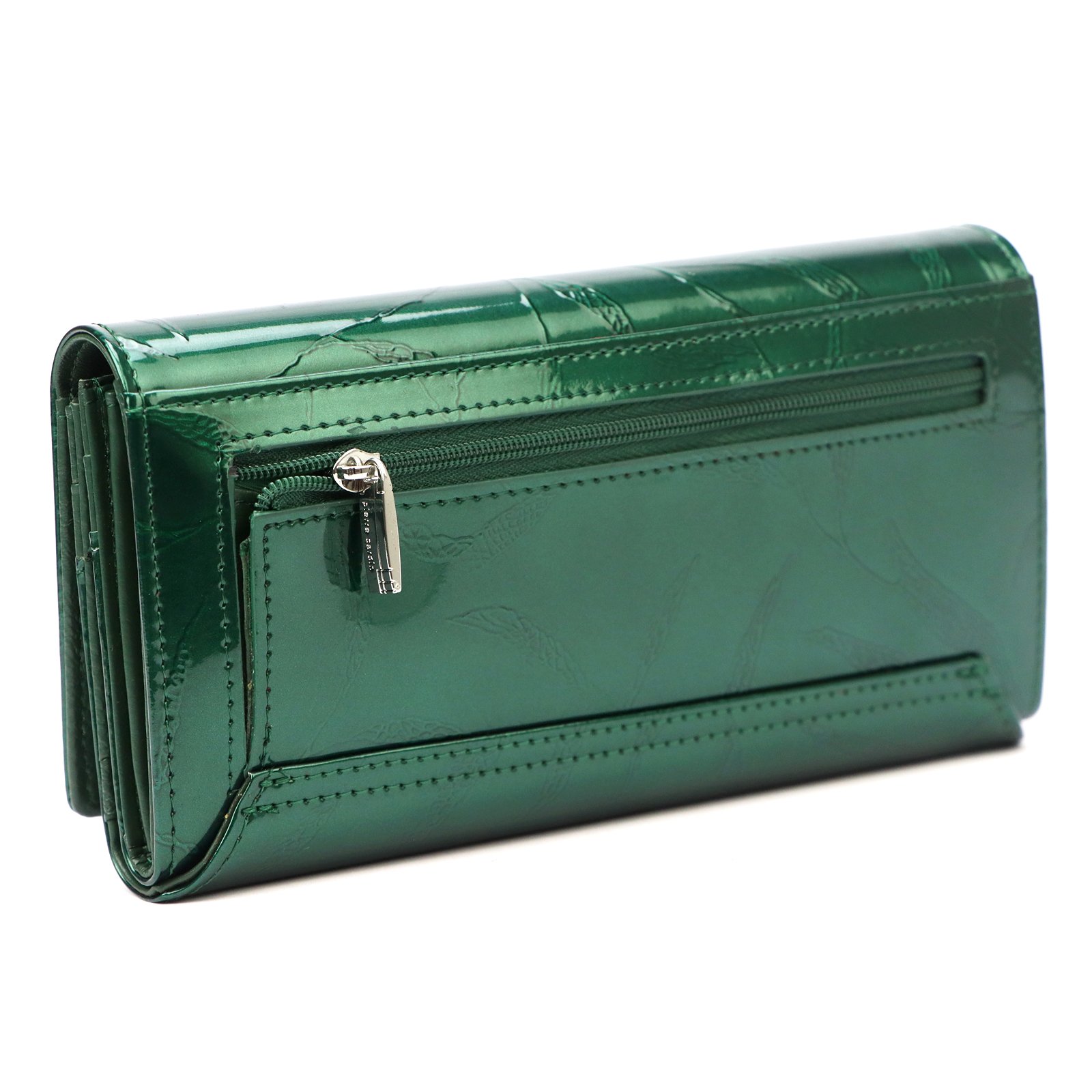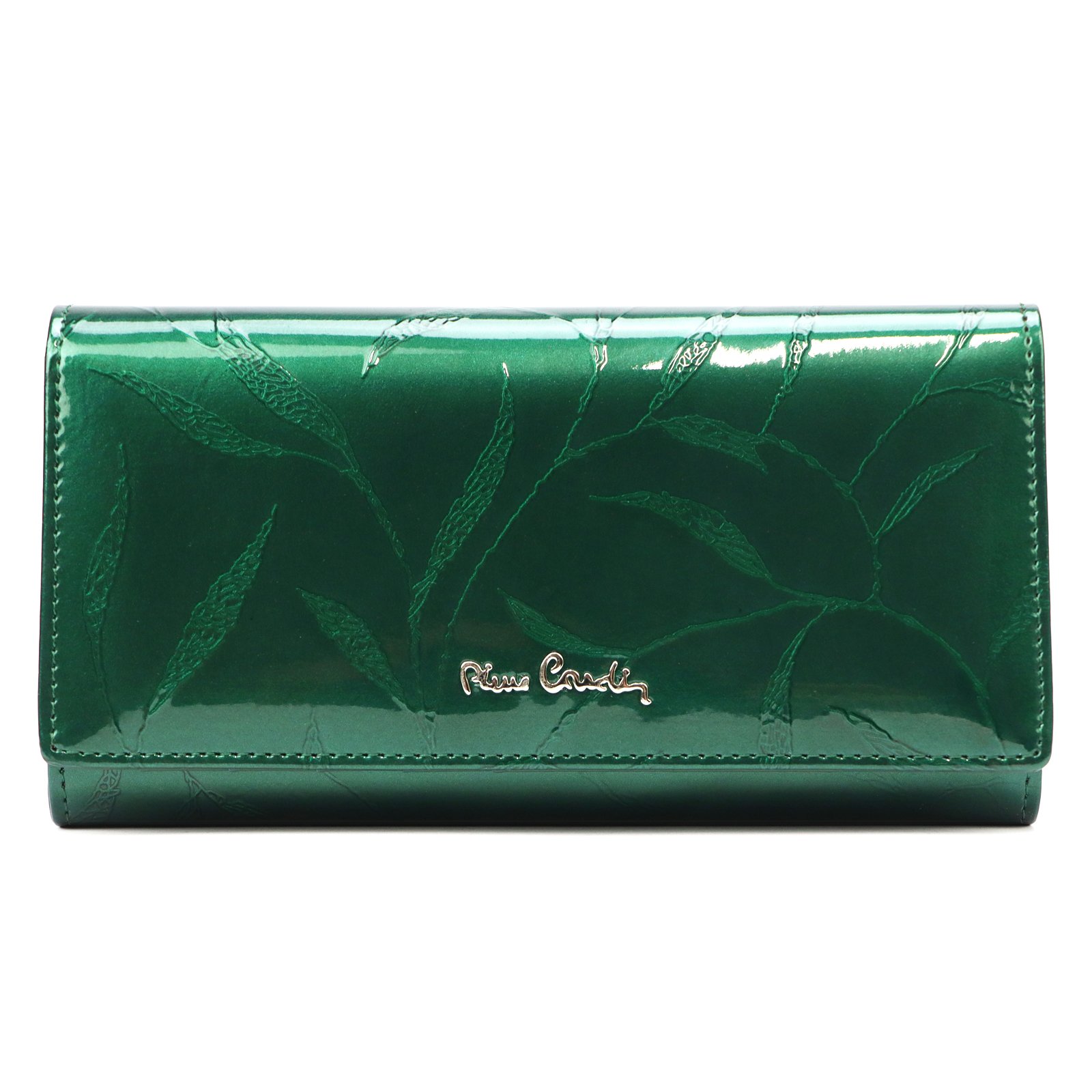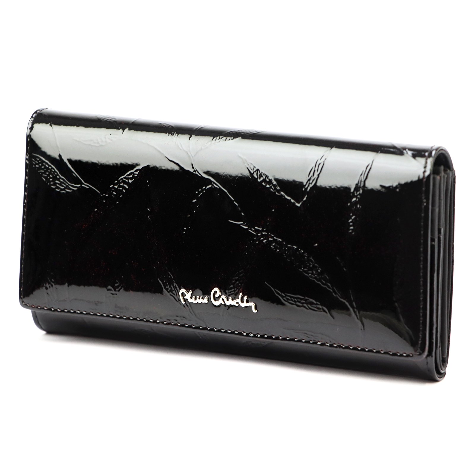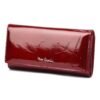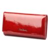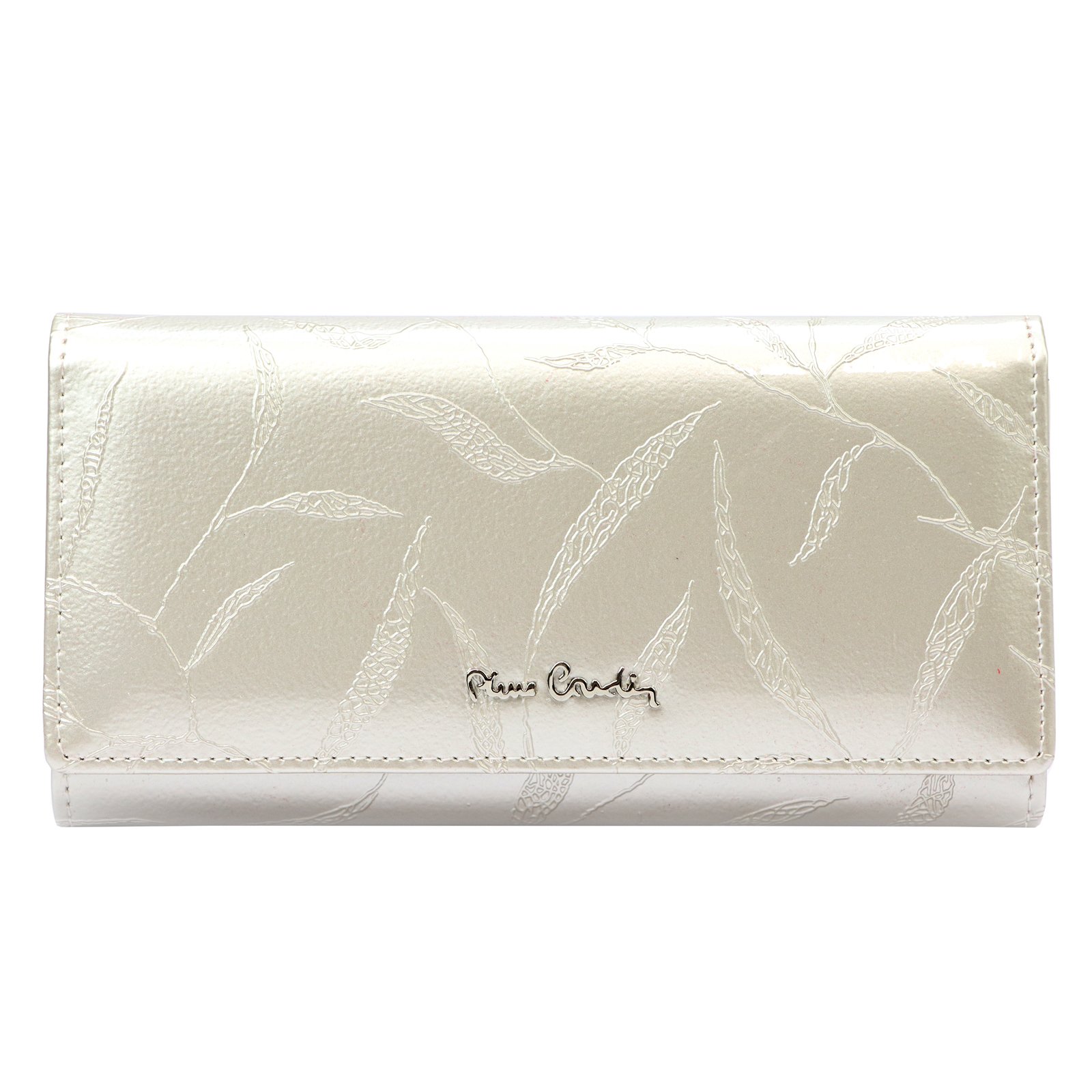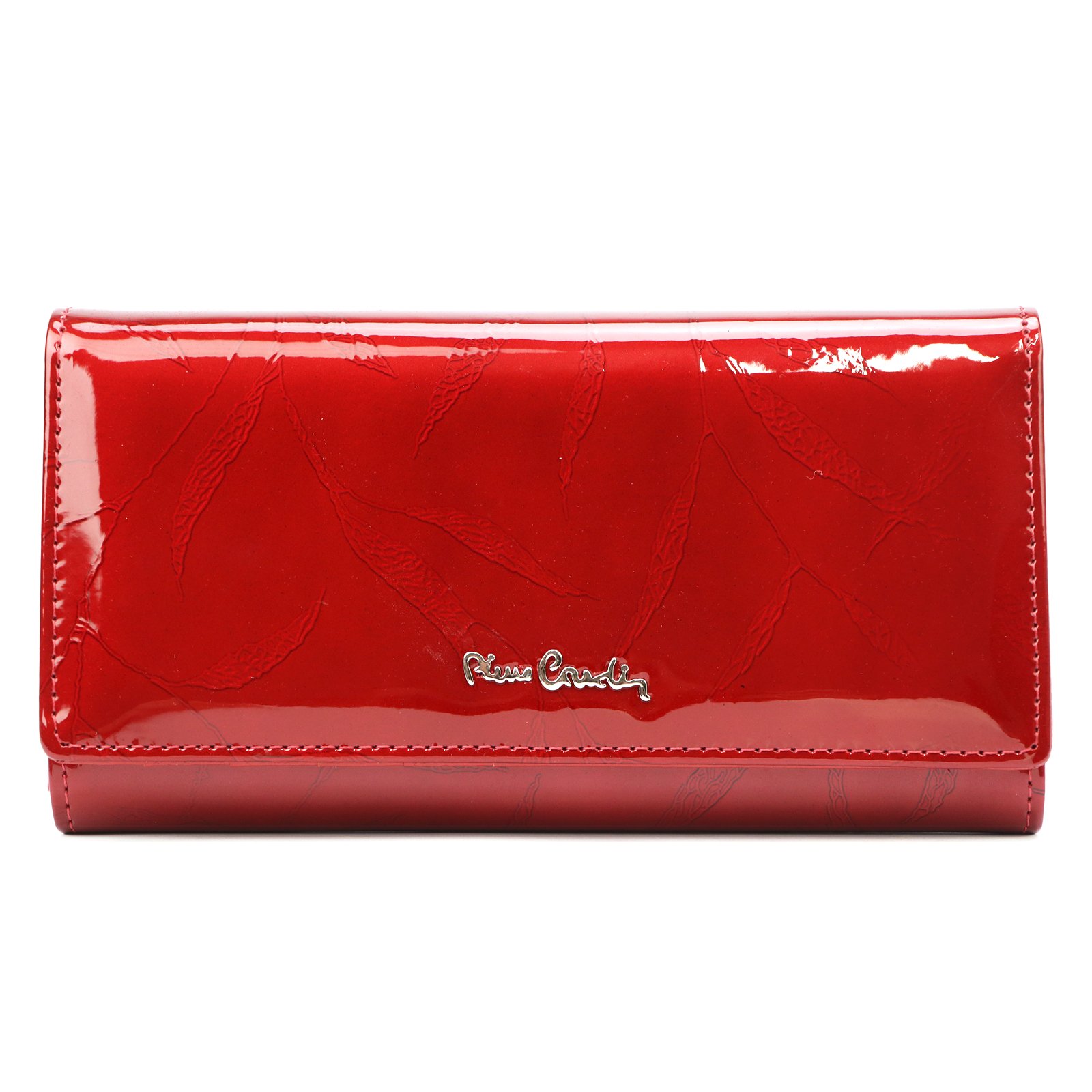 Duży portfel damski, wykonany z najwyższej jakości naturalnej, włoskiej skóry licowej lakierowanej, z wytłoczonym, delikatnym motywem liści.