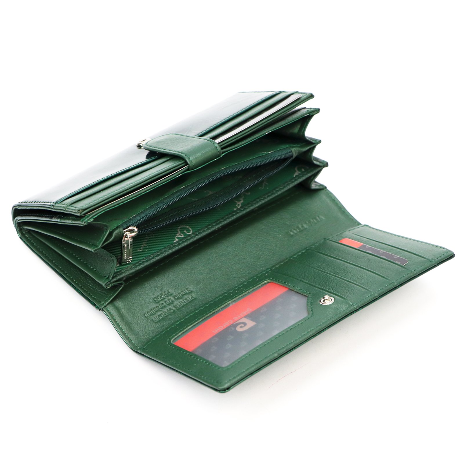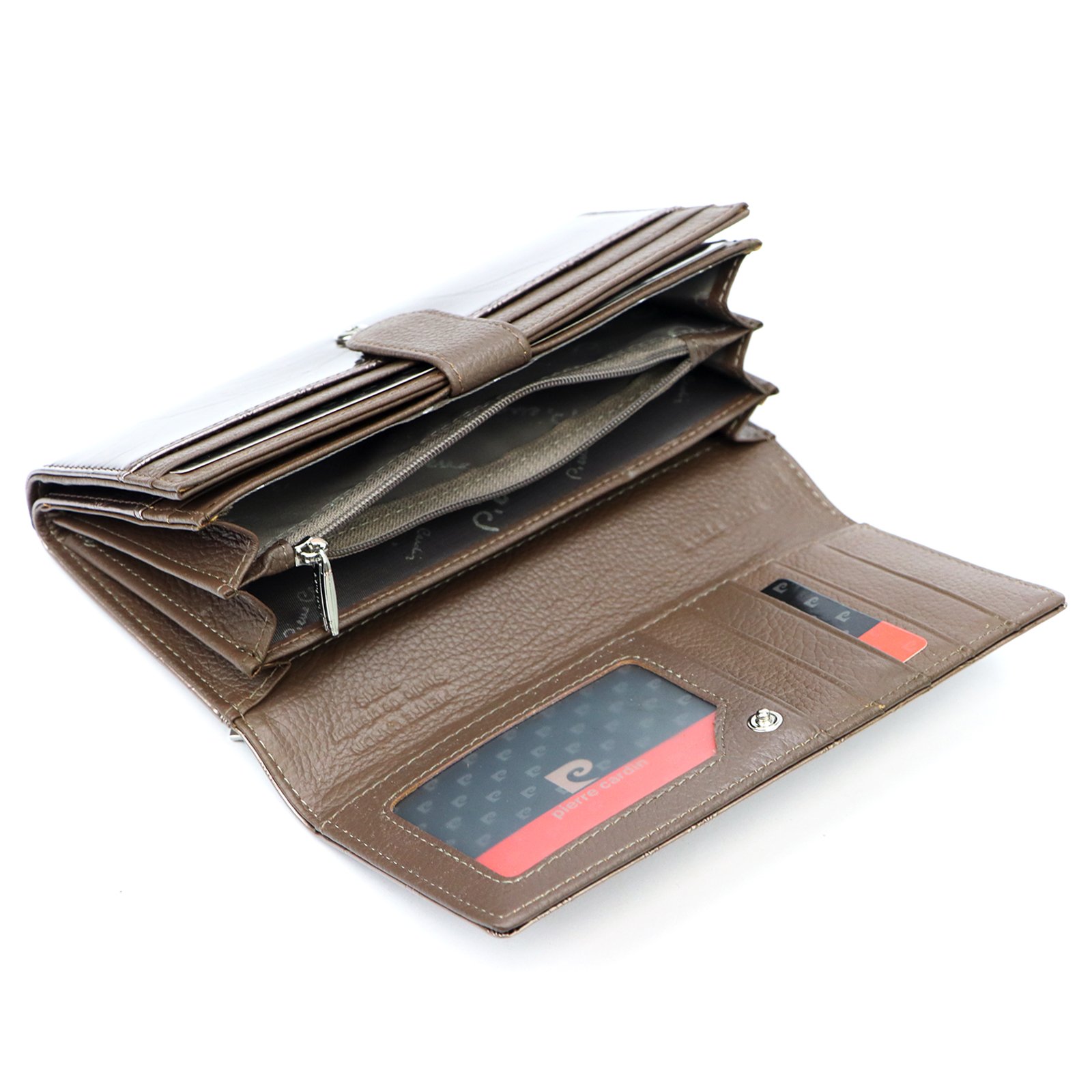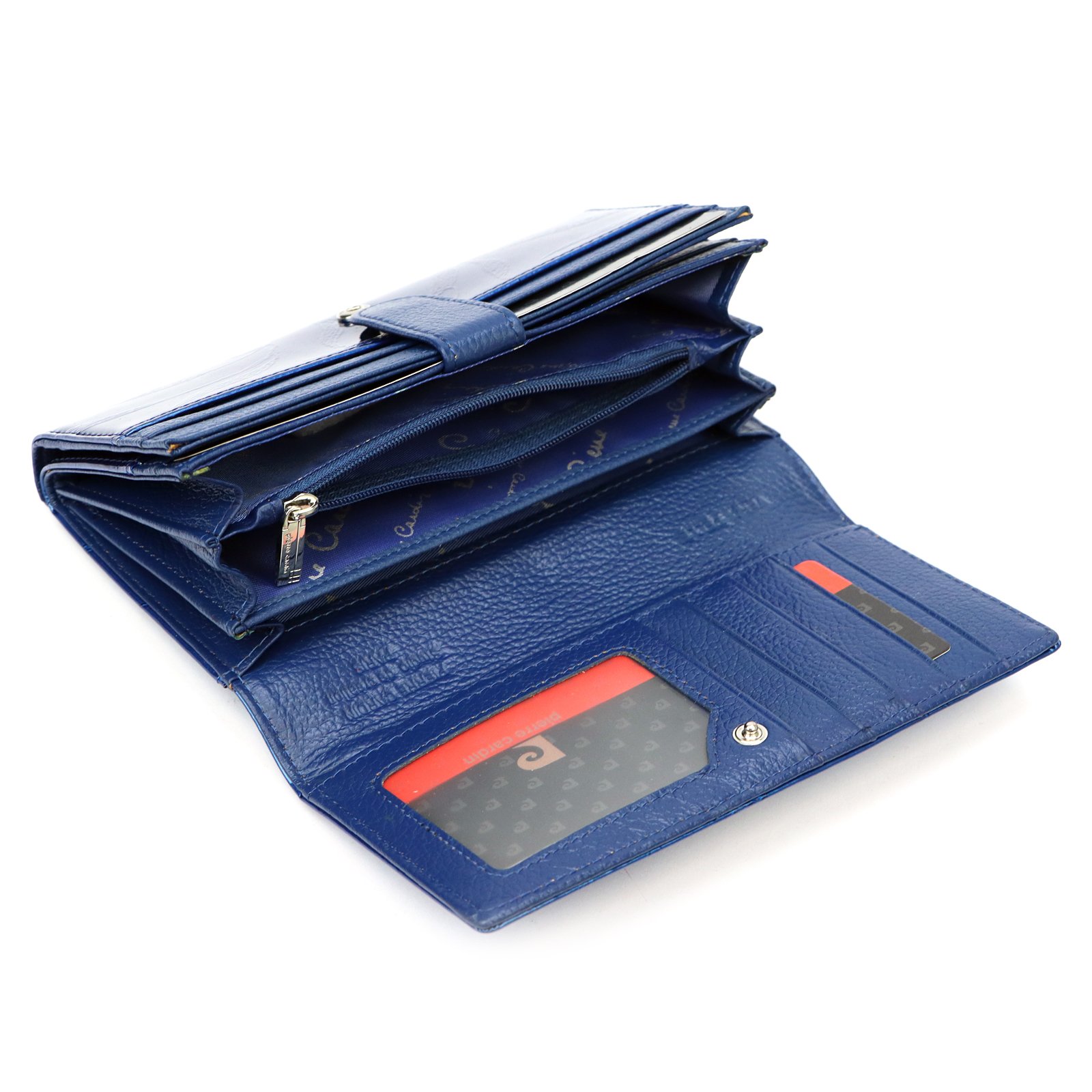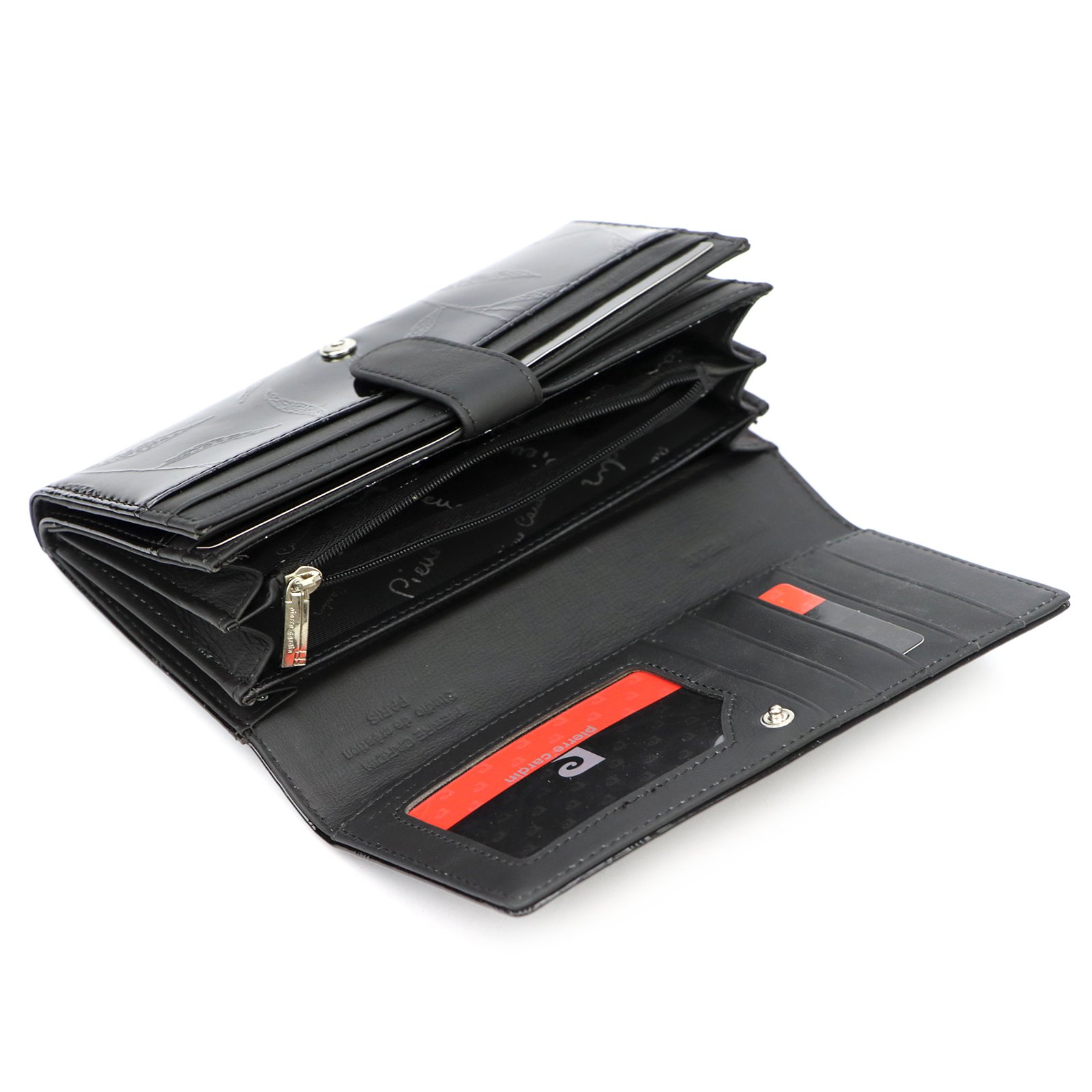 – na tylnej ściance portfela wszyto jeszcze jedną kieszonkę, zapinaną na zamek błyskawiczny.