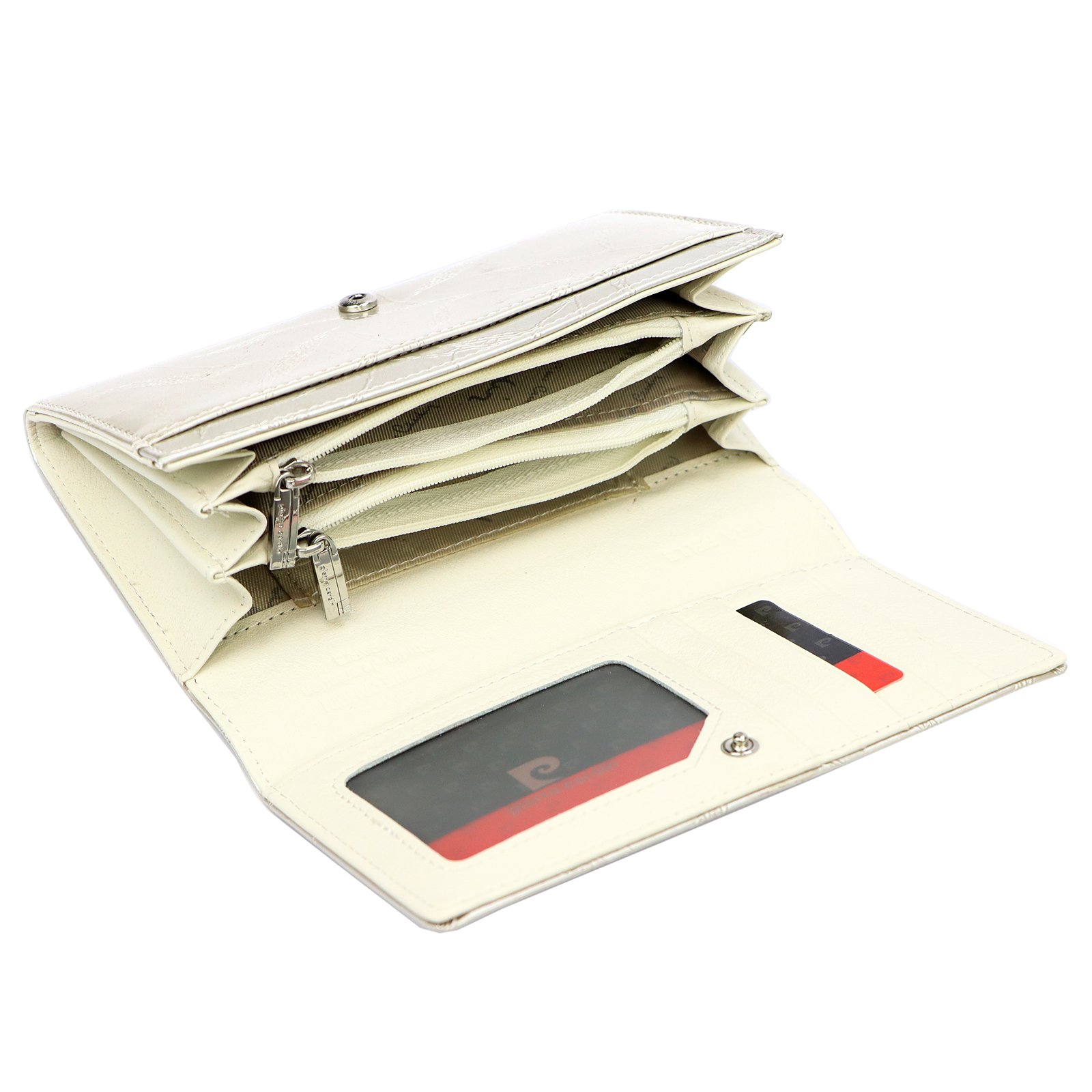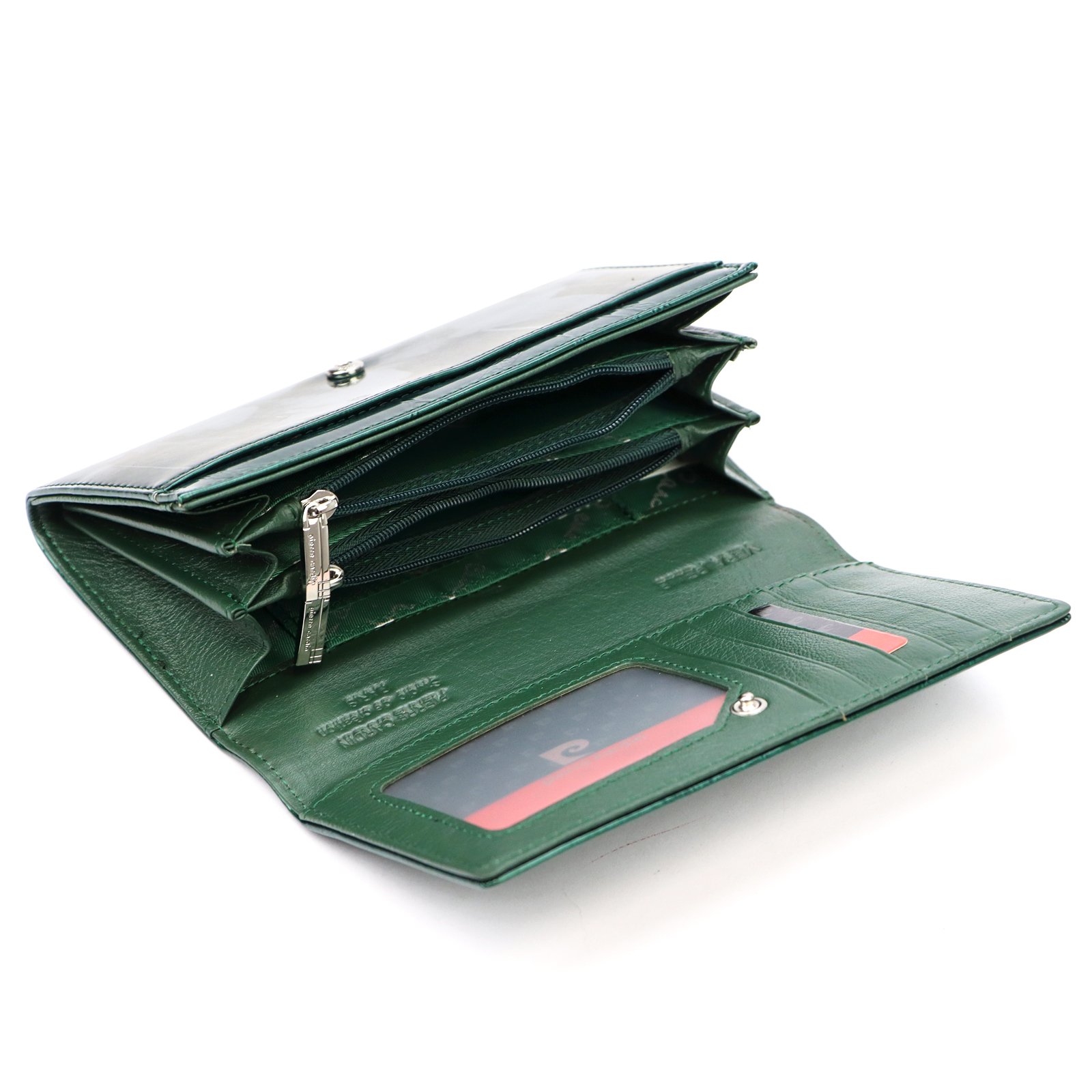 – trzy przegrody na banknoty (w dwie z przegród wszyto kieszonki zapinane na suwak),