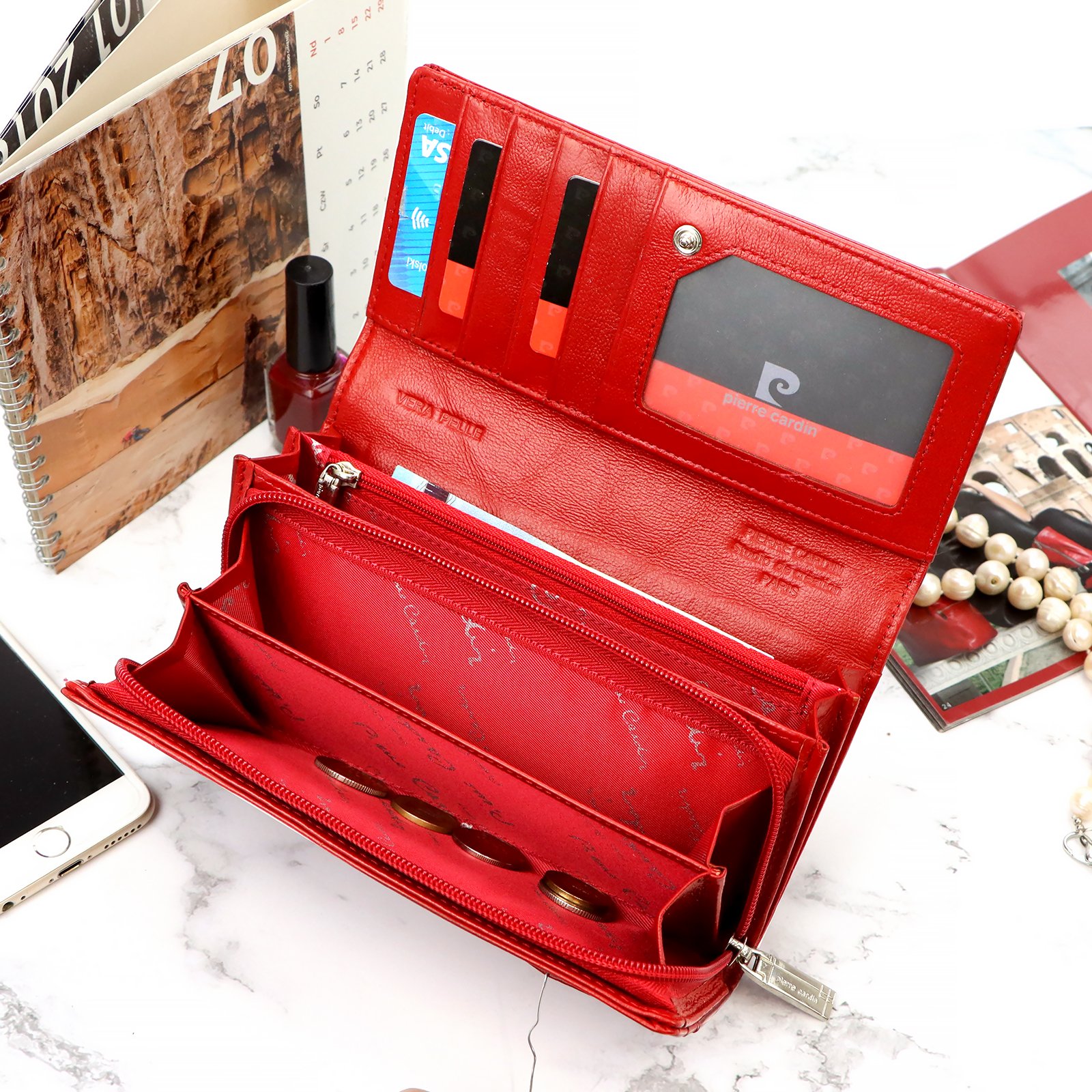 – kieszeń na drobne, podzielona na dwie części, zamykana na zamek błyskawiczny,